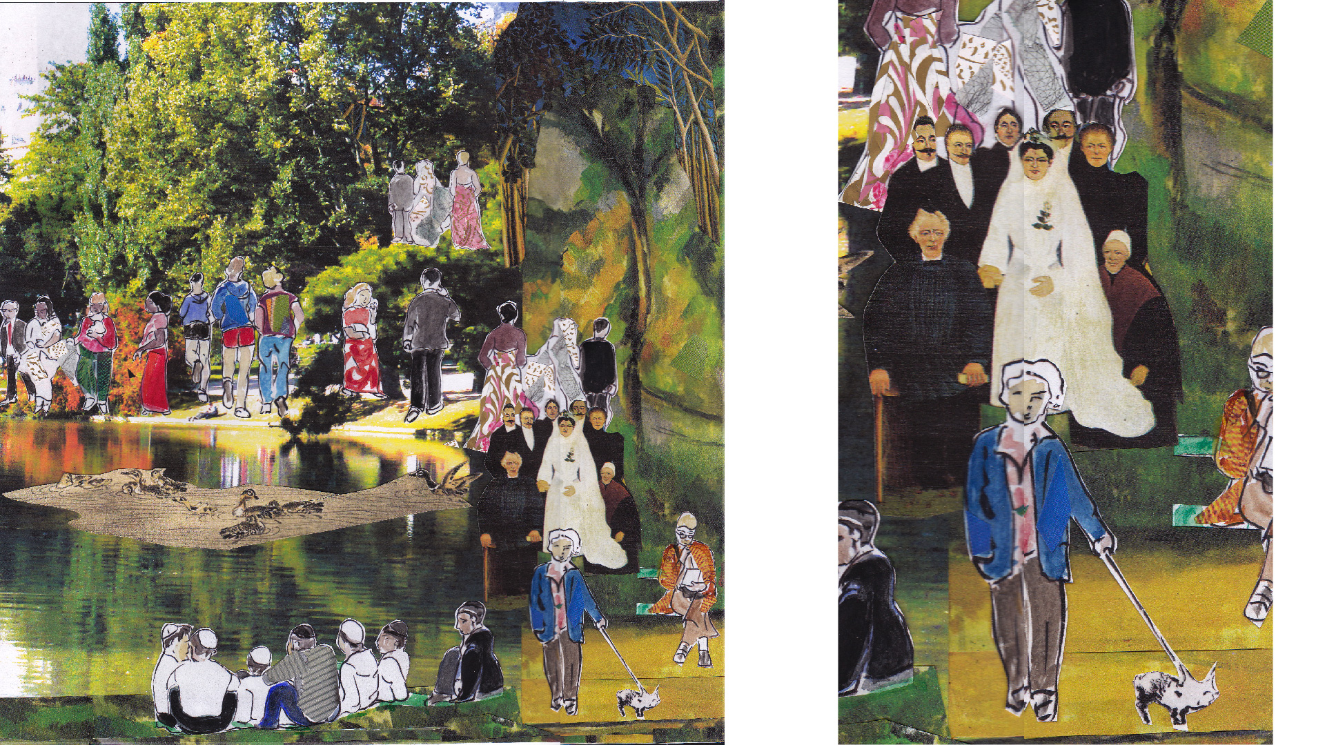 Conçu comme une succession de tableaux pittoresques, le parc met en scène l’organisation sociale compartimentée du Second Empire au sein d’une nature fabriquée, destinée à la naturaliser. Ce collage aux mille replis permet paradoxalement la coexistence des multiples communautés qui composent le Paris multiculturel contemporain, transformant le parc en une multitude de scènes où les êtres se croisent sans s’effleurer. Joggeurs, flâneurs, grappilleurs, retraités, mariés de toutes cultures, pêcheurs, enfants, touristes, amoureux, familles de toutes origines, musiciens, aquarellistes, pratiquants de boxe anglaise, de tai-chi ou de gymnastique, pique-niqueurs, explorateurs urbains, lecteurs, skieurs, religieux ou artistes absorbés par leurs activités et leurs rituels respectifs se côtoient sans se connaître. Chaque groupe occupe ses zones, ses horaires, ses hauteurs ou ses replis. De ces usages contradictoires naissent des territoires mouvants, réglés par des calendriers implicites. Les animaux participent eux aussi à cette cartographie instable : fauvettes, mésanges charbonnière et bleue, chouette hulotte, bernaches du Canada, corneilles, canards colverts, mouettes rieuses, hérons cendrés ou perruches à collier luttent pour maintenir ou développer leurs territoires respectifs.