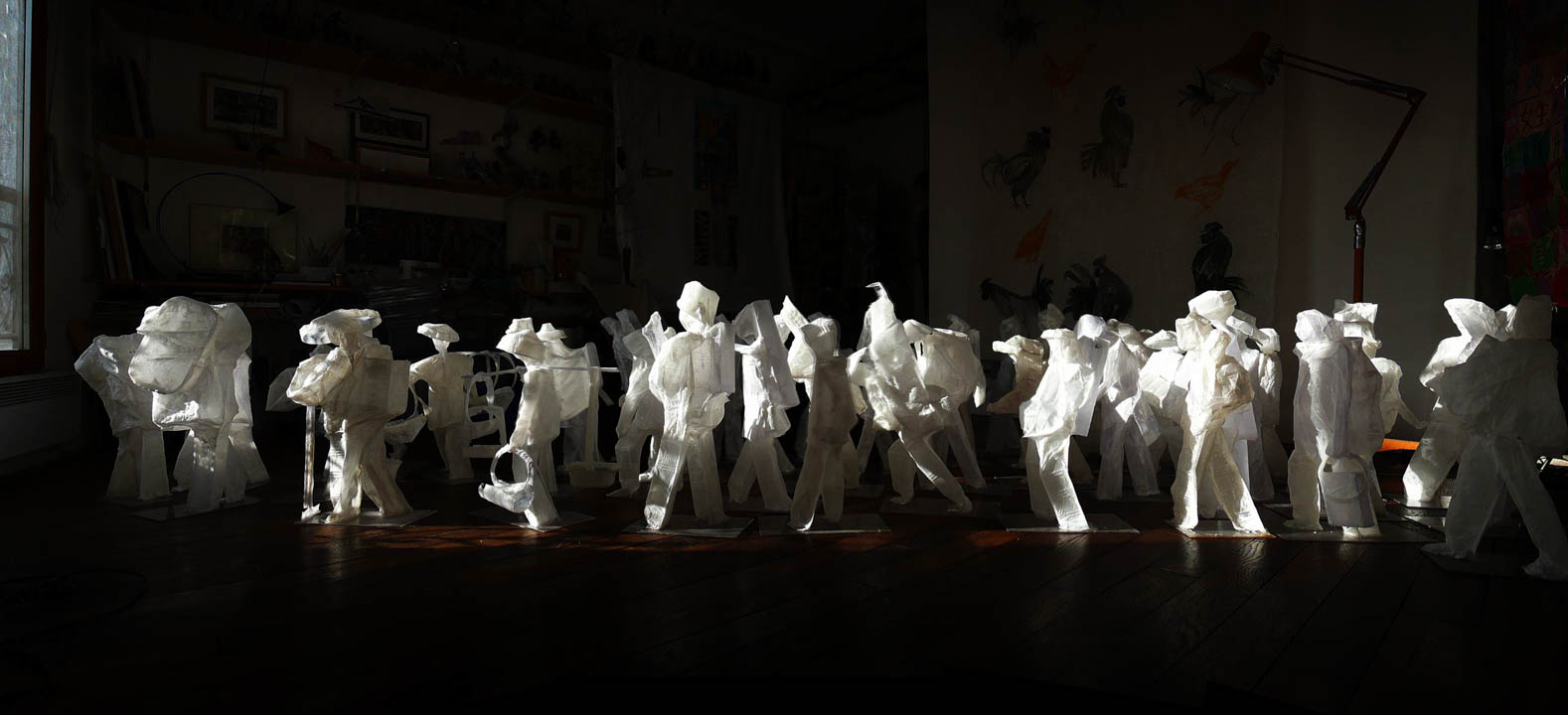Au travers de ces figures résonne l'écho lointain et malicieux des soldats de Xi'an, ces personnages de terre cuite ultime garde du premier empereur Qin. Mais cette armée de femmes ne garde rien, ne défend rien. Aucune posture martiale n'altère le naturel des attitudes, la tension des corps. Les matériaux qui la composent ne prétendent pas à l'éternité. Elles se rassemblent en un flot calme et pacifique. Ni amazones, ni bacchantes, c'est une armée solaire dont le mouvement épouse la marche du monde.